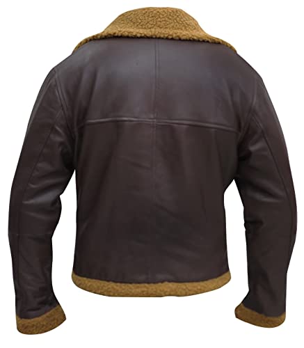 LP-FACON Giacca da uomo in vera pelle di agnello con cappuccio da aviatore in pelliccia nera B3 - ww2 Bomber, Marrone zenzero., M
