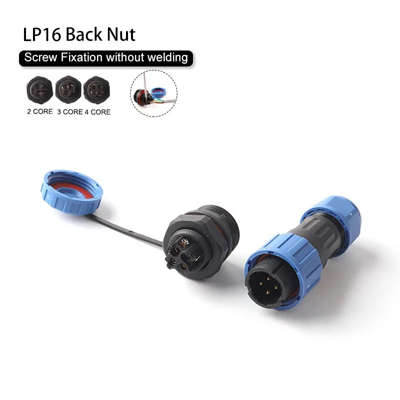 LP16/SP16 IP68 Back nut waterproof socket connector plug 2 pin 3 pin 4 pin Screw crimping without welding connector Panel Mount