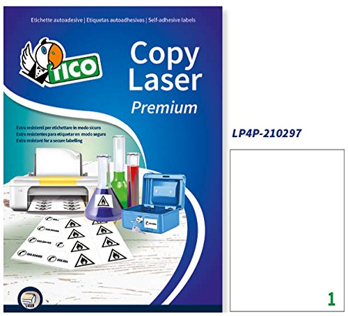 Tico LP4P-210297 Etichetta in Poliestere, 210 x 297, Bianco, 70 fogli di etichette in formato A4