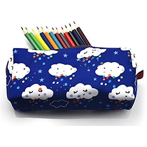 LParkin Kawaii Clouds Students - Astuccio in tela di canapa per matite, portapenne, portapenne, astuccio per trucchi, trousse (blu)