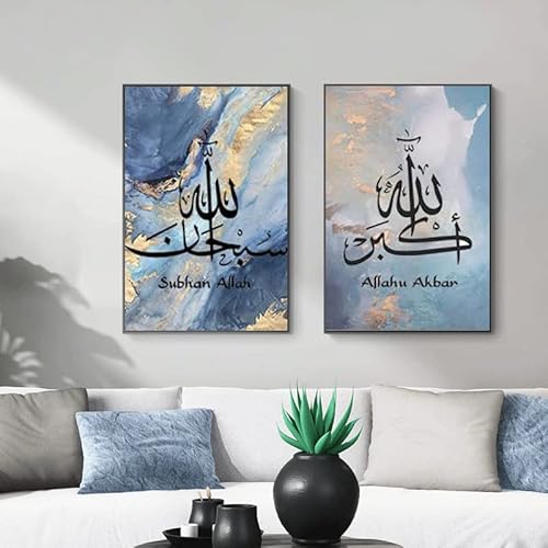 LPFNSF Calligrafia araba islamica, sfondo in marmo, tela di Allah, citazioni islamiche, poster su tela, decorazione su tela, senza cornice (70 x 100 cm*3)