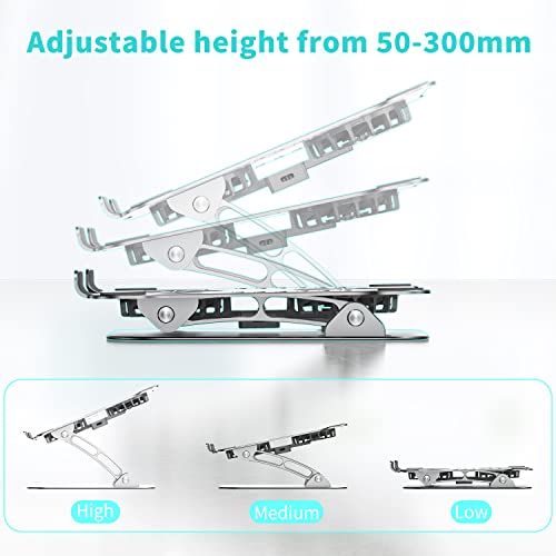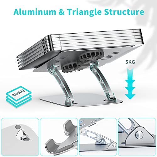 LPUNCD Supporto PC Portatile con Ventola, Supporto Laptop Pieghevole Regolabile in Alluminio, Supporto per PC Notebook Compatibile con MacBook, Tablet, Laptop (10-17"), Argento
