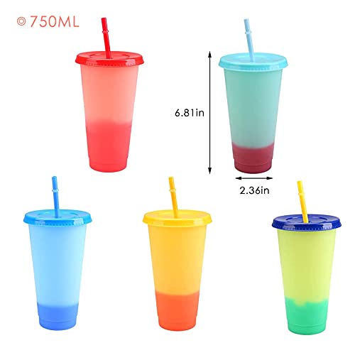 LQKYWNA Bicchiere In Plastica Riutilizzabile Con Coperchio E Cannuccia Da 710 Ml, 5 Colori, Set Di 5 Bicchieri A Colori Variabili