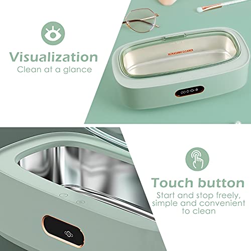 Piccolo e portatile - La dimensione del prodotto è di circa 206 x 104 x 63 mm e la capacità del lavello da 300 ml è sufficiente per soddisfare la maggior parte delle tue esigenze. Puoi mettere 2 bicchieri alla volta. Questo pulitore ad ultrasuoni è realizzato in materiale ABS di alta qualità, durevole, resistente all'usura, non facile da deformare, leggero e facile da trasportare.