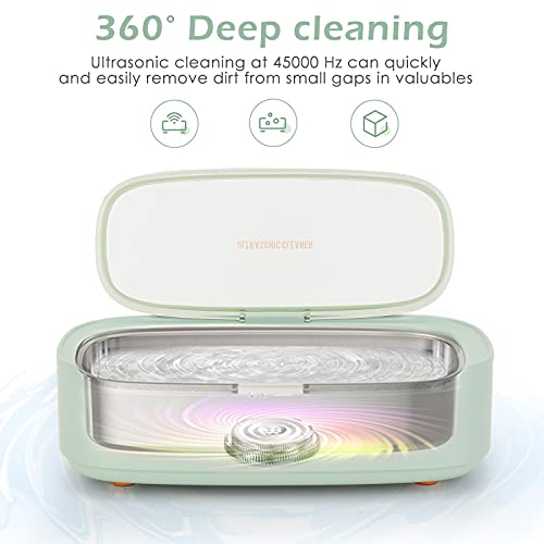 Pulizia potente a 360 ° - Questa macchina professionale per la pulizia dei gioielli ad ultrasuoni genera onde ultrasoniche a 45 kHz, che possono rimuovere facilmente lo sporco negli spazi vuoti e negli angoli morti, rimuovere efficacemente impronte digitali, olio, polvere e rimuovere gli odori senza danneggiarlo. Puoi vedere chiaramente che le macchie vengono scrollate dalla superficie dell'oggetto e si diffondono nell'acqua.