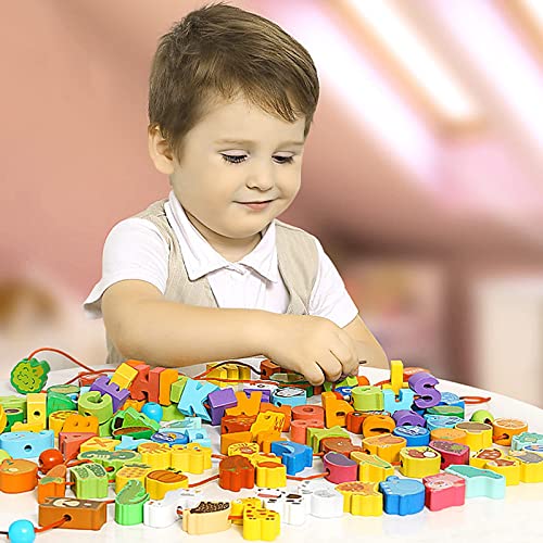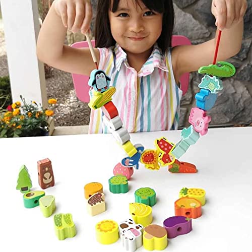 LQKYWNA Giocattolo per Infilare I Bambini, Gioco per Infilare Le Perline 42 Pezzi, Giocattolo Educativo Montessori in Legno, Gioco per Infilare Le attività in età Prescolare per Bambini di 2-5 Anni