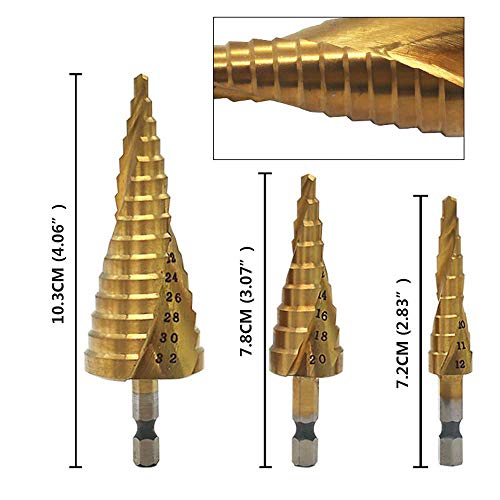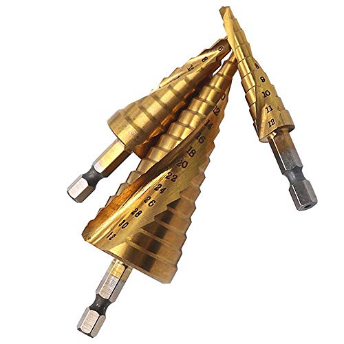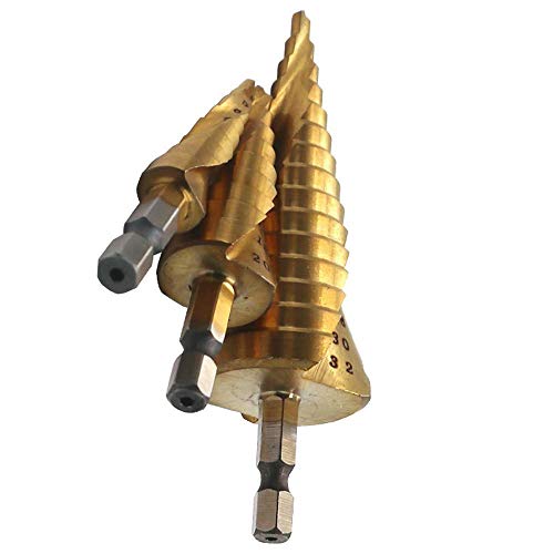 LQKYWNA 3 Pezzi Set di Punte per Trapano a Spirale a Spirale, Strumento di Perforazione Centrale Scanalato con Gambo Esagonale in Titanio Trapani con Gradino a Fori Multipli