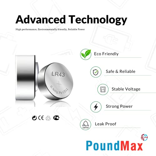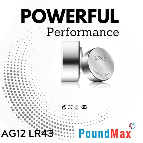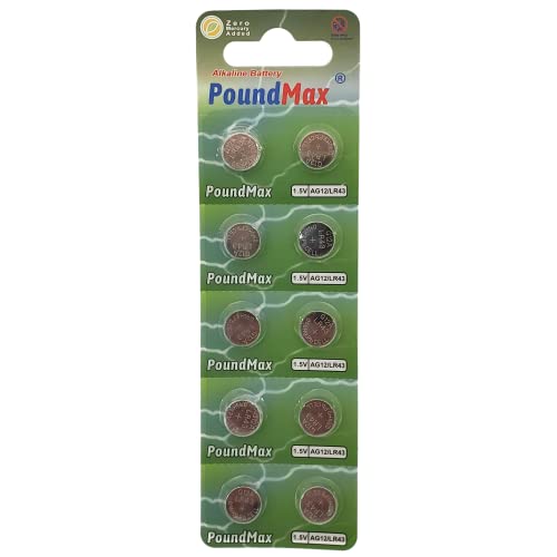 10x AG12 (LR43, LR1142, 386) 1,5V - PoundMax Batterie a bottone Pile Alcaline | 1x pacchetto da 10