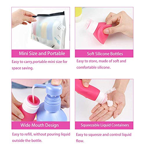 【TSA OMOLOGATO E FACILE DA TRASPORTO】: contenitori / bottiglie da viaggio morbidi da 3 once, tuta per shampoo, balsamo, bagnoschiuma, lozione e altro ancora. È ben confezionato in una borsa con cerniera, perfetto per viaggi di lavoro o personali, campeggio, escursioni, picnic, divertimento all'aria aperta, palestra ecc.