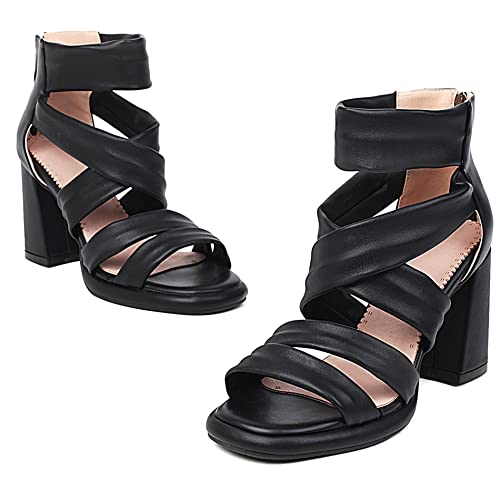 Lroey Reoly Sandali con Tacco Alto Donna, Sandali Punta Aperta Eleganti Tacco a Blocco Scarpe da Sera con Plateau Zip con Cinturino Alla Caviglia 031 Nero Numero 38 EU