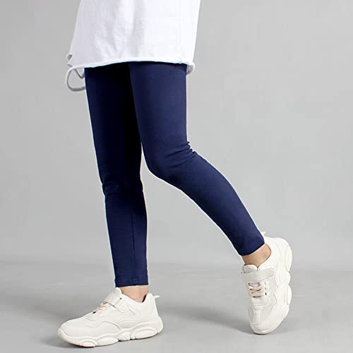 LSHEL Leggins Bimba Pantaloni Skinny Elasticizzati Tinta Unita Pantaloni Sportivi Primaverili e Autunnali in Cotone per Età 5-13 Anni, Blu navy, 140