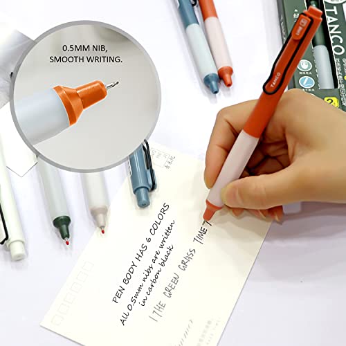 Un set di 6 penne gel: riceverai 6 penne a inchiostro nero in gel, l'involucro è in 6 diversi colori Morandi, il design è semplice ed elegante, per soddisfare le tue esigenze quotidiane e sostitutive.
