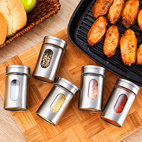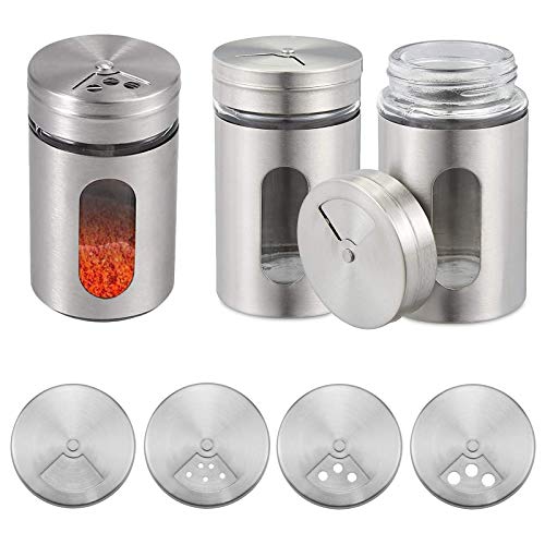 LTDYRCT061, Shaker Spezie Metallo 3 Pezzi Barattoli Spezie Argento, Rotondi Shaker Spezie Vetro Barattolo Spezie Dosatore con Finestra Trasparente e Regolamento Scatter per Spezie Erbe Aromatiche