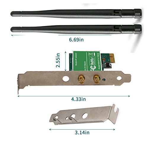 Dotato di 2 antenne omnidirezionali esterne staccabili da 3dBi migliorano la ricezione di rete e garantiscono una connessione wireless stabile e veloce a lungo raggio. La staffa a basso profilo e di dimensioni standard è adatta sia a PC desktop di dimensioni mini che standard.