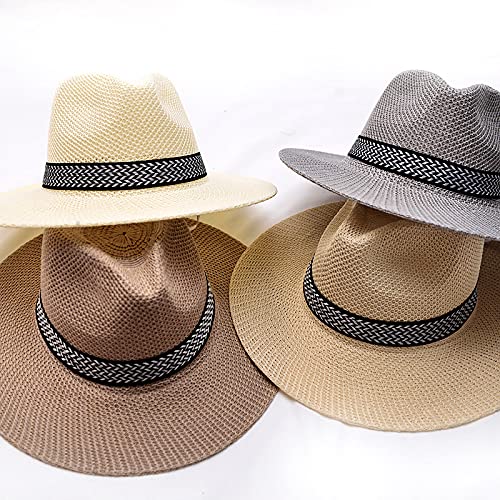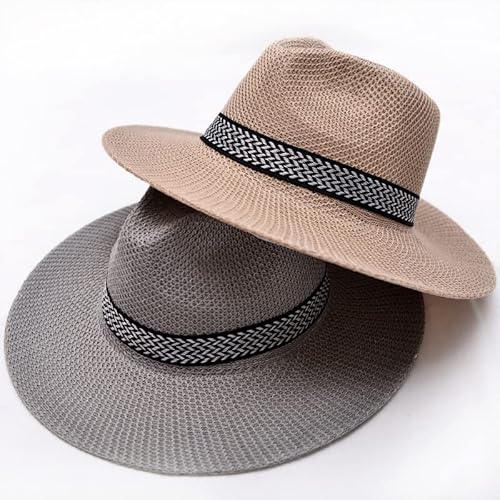 LTHTX Cappello estivo classico Panama, cappello da spiaggia fatto a mano per padre da uomo protezione UV