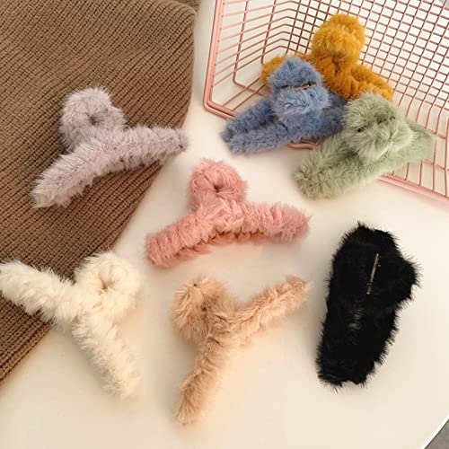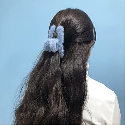 Ltsbaed Fermaglio per Capelli in Peluche Capelli Clip Artiglio di Plastica Fermagli per Capelli Antiscivolo Grandi Fermagli per Capelli Spessi Accessori Giallo Foschia Blu Nero Marrone Scuro 4pezzi(B)
