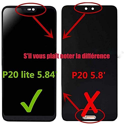 Display LCD per Huawei P20 Lite NE-TL00, ANE-LX1, ANE-LX2, ANE-LX3, ANE-LX2J, ANE-AL00, ANE-L23, ANE-L22, ANE-L21, HWV32/Huawei Nova 3e, nero (senza cornice), kit di riparazione con nastro adesivo 3M. - Si prega di confermare il modello prima dell'acquisto