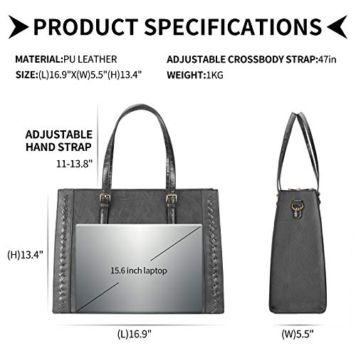 【PERFETTE BORSA DONNA PER PORTATILE DI DIMENSIONI 】Le dimensioni esterne di questa borsa donna per laptop sono 43 cm x 14cm x 34 cm (L x P x A), questa borsa grande donna si adatta alla maggior parte dei laptop da 15.6 pollici come Apple MacBook Air / Pro, Samsung e ecc Il peso è estremamente leggero, solo 1 kg.I doppi manici regolabili sulle spalle aiutano a distribuire il peso per un trasporto più comodo.