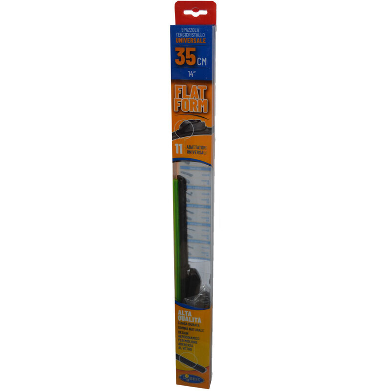 Spazzola tergicristallo - Marca Lubex - Modello Flat Form - Universale - 35 cm 14'' - Gomma naturale - 11 adattatori Spazzola tergicristallo universale Flat Form Lubex 35 cm, 14''. Gomma naturale di lunga durata che permette una tergitura accurata e scorrevole, design aerodinamico per migliorare l'aderenza al vetro. In ogni confezioni ci sono 11 adattatori universali.