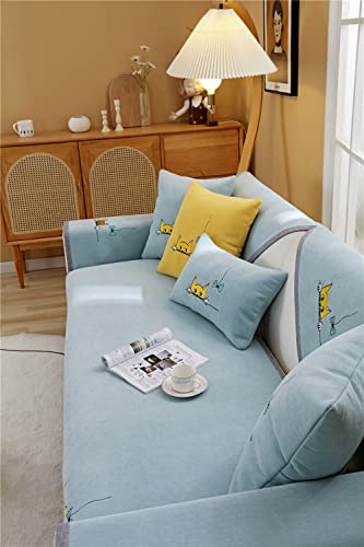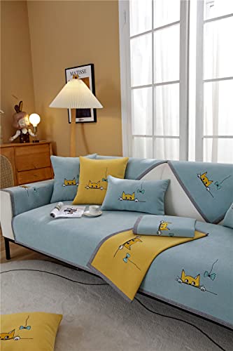 LUBOSE Copertura per divano in tinta unita protezione per mobili coperta per divano antiscivolo adatta per divano per cani da compagnia (cuscino da 45 x 45 cm, gatto - azzurro)