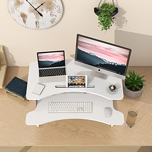 Lubvlook Convertitore da scrivania regolabile in altezza, 83cm / 33" con vassoio per tastiera, supporto da tavolo ergonomico postazione di lavoro,Bianco