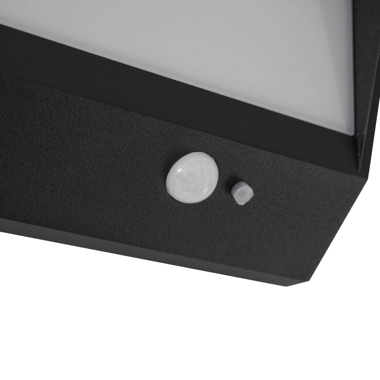 Applique da esterno Dava LED angolare con sensore di movimento e funzionamento solare Provate l'eleganza e la funzionalità dell'applique da esterno Dava LED, che non solo illumina il vostro balcone o patio con una nuova luce, ma convince anche per l'elevato grado di protezione IP54. Questo moderno apparecchio è dotato di una sorgente luminosa a LED integrata che garantisce un'illuminazione a risparmio energetico, unendo così efficienza e design sofisticato. Grazie al funzionamento a energia solare, può essere posizionato in modo flessibile all'esterno senza bisogno di una fonte di alimentazione esterna. Che sia per le serate accoglienti sul balcone o come invitante fonte di luce nell'area d'ingresso, questa applique da esterno è una garanzia di illuminazione suggestiva e pratica. Con il suo look moderno, si integra perfettamente in qualsiasi design esterno e crea accenti di stile che sottolineano il carattere della vostra area esterna. Il sensore integrato rileva i movimenti nel raggio di 5 metri e accende automaticamente la luce. È possibile scegliere tra diverse modalità di illuminazione. Dati tecnici sensore di movimento: - Ambito di rilevamento 3 -5 metri - Angolo di rilevamento 55-110° - 3 modalità di illuminazione