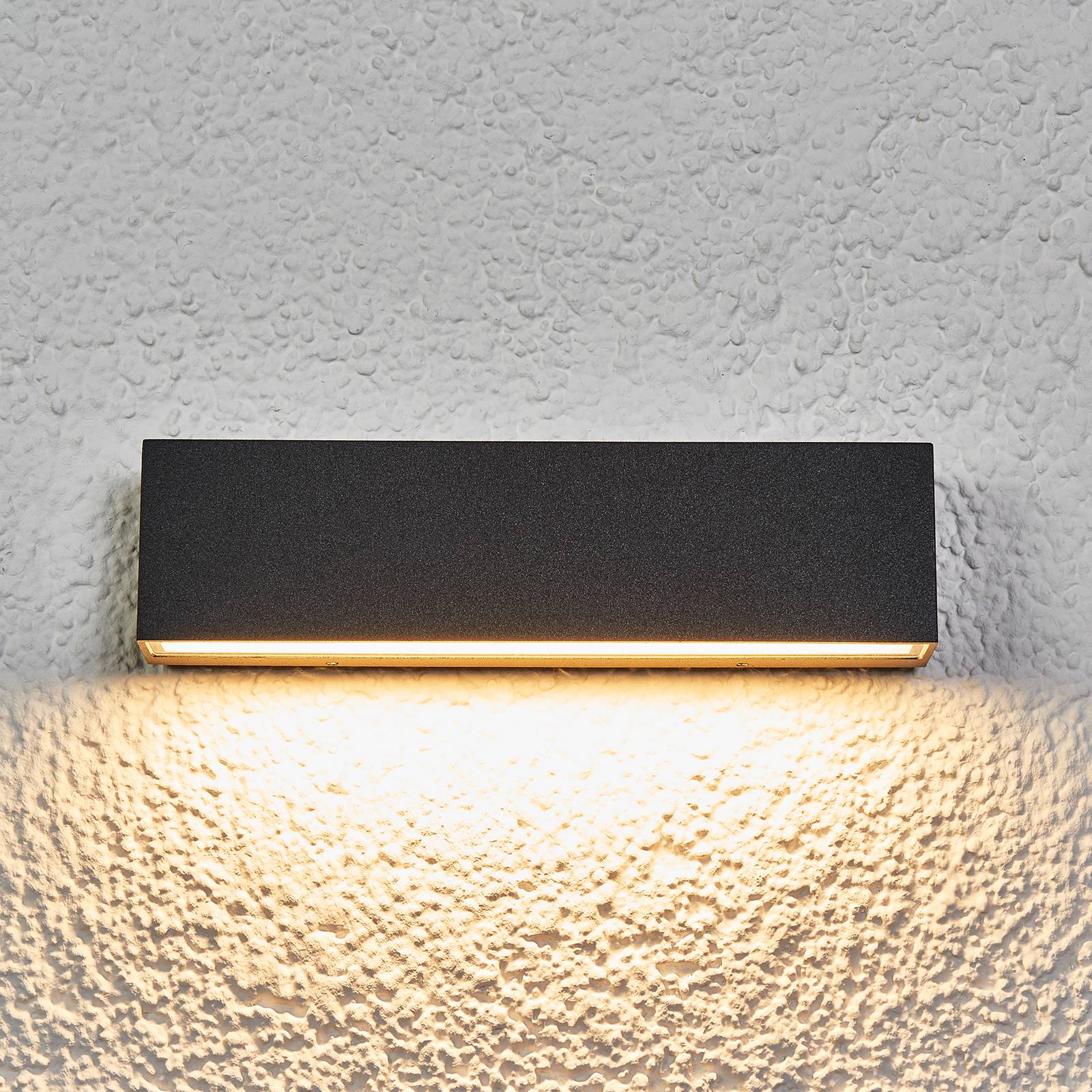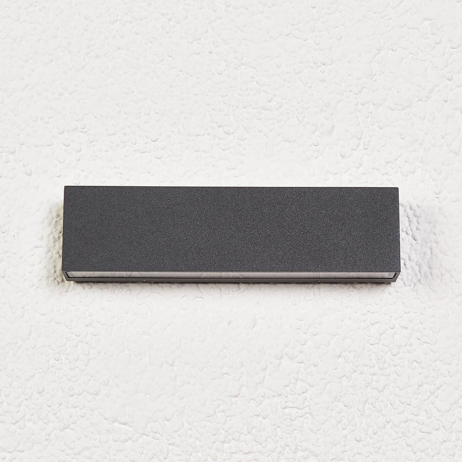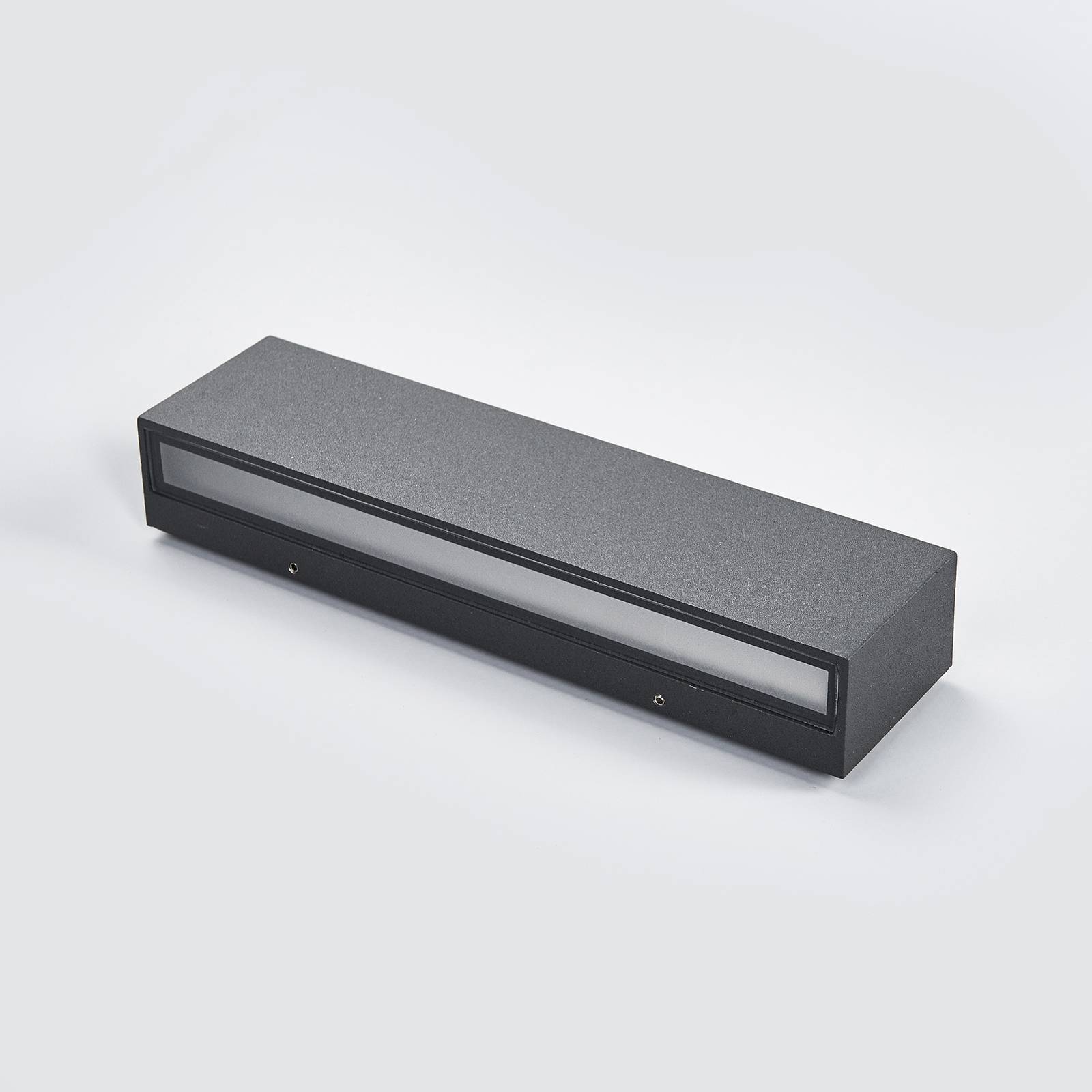 Set di 3: Applique da esterno rettangolari a LED Elvira Elvira ha un design molto lineare, che non solo si abbina a molti stili, ma ha anche un aspetto estremamente contemporaneo. La superficie del corpo in alluminio è verniciata in grigio grafite. I LED sono un prodotto di marca Toshiba e sono di lunga durata e ad alta efficienza energetica. Elvira può essere acquistata qui in confezione da 3 pezzi.
