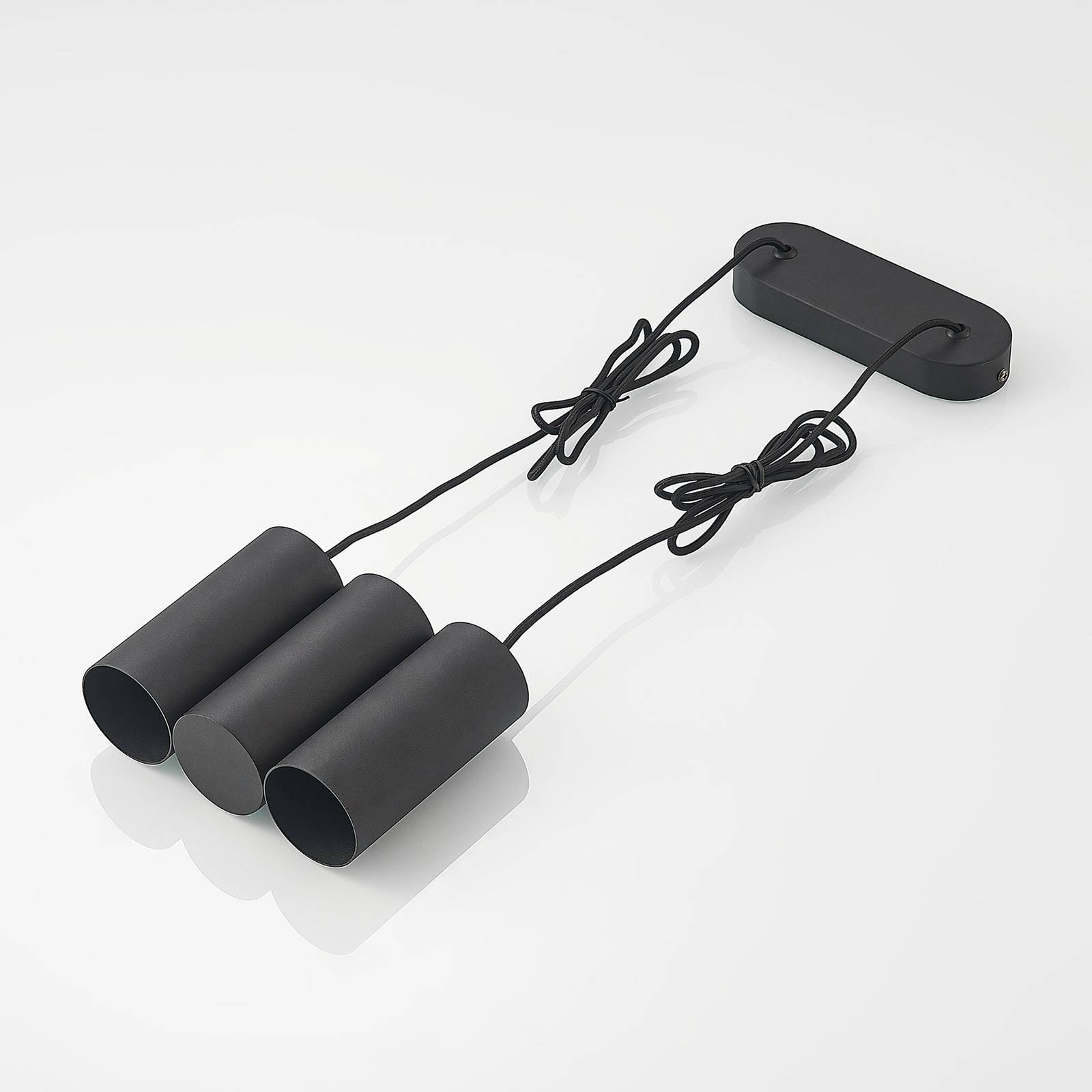 Lampada a sospensione Cesur in acciaio nero-sabbia La sottile lampada a sospensione Cesur ha un carattere robusto e un design sottile. È costituito da un paralume a fascio, che consiste in tre paralumi tubolari e può essere dotato di tre sorgenti luminose. Due dei paralumi sono rivolti verso il basso, mentre il terzo è rivolto verso l'alto, creando un'illuminazione interessante. La colorazione nero-sabbia completa il design accattivante della lampada e si integra bene in diversi stili di interni. La lampada a sospensione Cesur è ideale per essere installata in un soggiorno o sopra un tavolo da pranzo