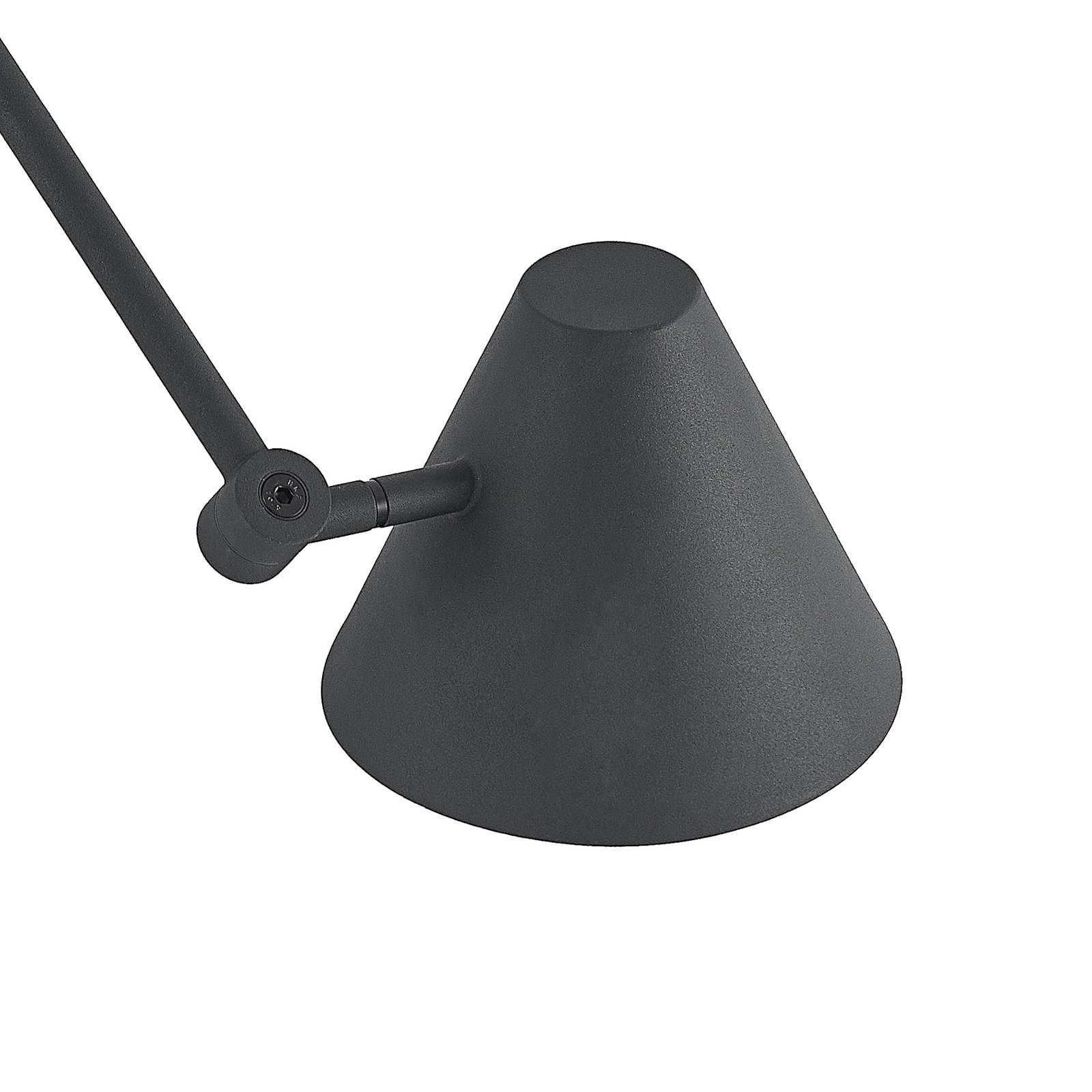 Plafoniera a due luci Phina dal design sottile in acciaio Phina è una pratica lampada da soffitto dal carattere moderno. Si trova su un supporto a soffitto compatto e rotondo da cui si innalzano due bracci sottili, ognuno dei quali ha due articolazioni mobili e termina con eleganti paralumi. L'apparecchio è composto interamente di acciaio nero, mentre l'interno delle tonalità appare in un armonioso bianco. Il design moderno si adatta particolarmente bene a un soggiorno o a una sala da pranzo e pone accenti discreti sui soffitti piatti. La lampada da soffitto Phina può essere dotata di lampadine E27 e i bracci articolati forniscono un'illuminazione flessibile.