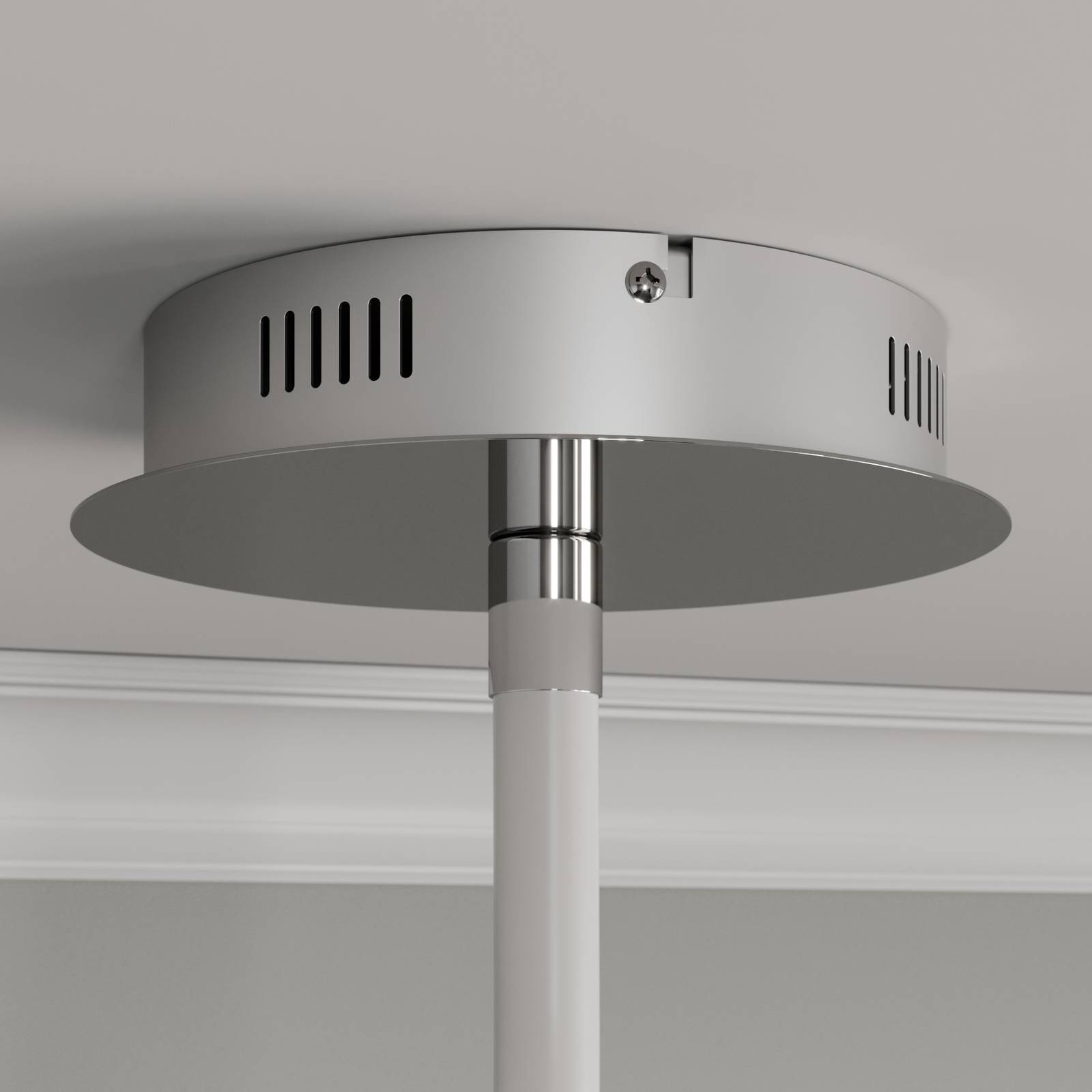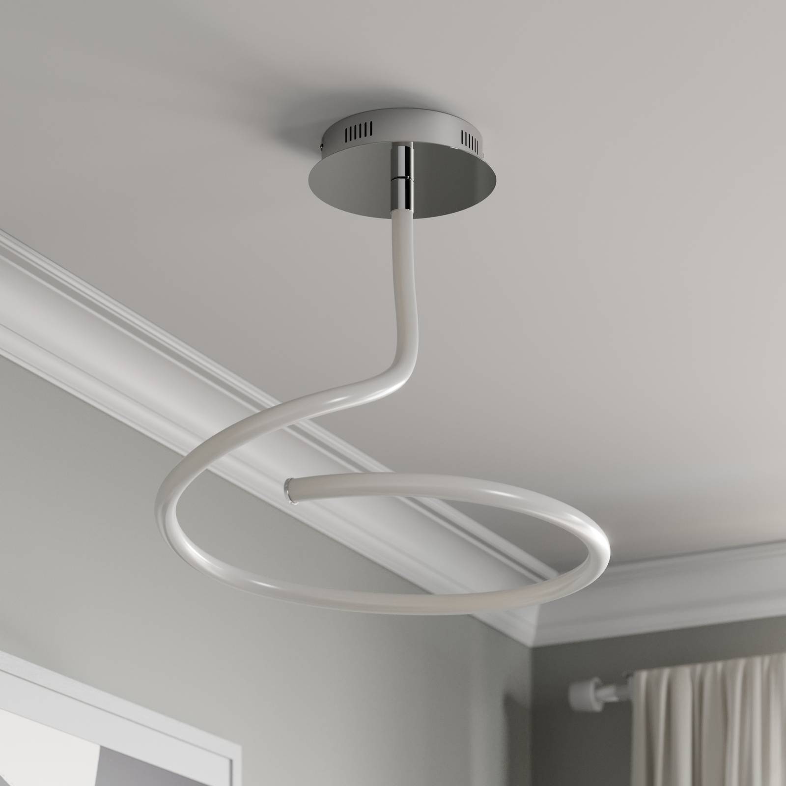 Una sorgente luminosa dal design insolito: la lampada da soffitto Serpentina La lampada da soffitto Serpentina LED ha un design accattivante e un aspetto ridotto che può essere integrato in quasi tutti gli interni moderni. Il corpo dell'apparecchio è fissato direttamente alla piastra di montaggio rotonda in acciaio inox, che si snoda in cerchio come un serpente. Nel progetto si è rinunciato completamente al paralume, per mettere in primo piano l'essenziale. La fascia luminosa curva emette una luce bianca calda con un angolo di emissione di 360° e la distribuisce in modo omogeneo nella stanza. Se necessario, questo splendido apparecchio può essere dimmerato in tre fasi grazie alla funzione switch-dim. 3-step-dim off: Con un interruttore a parete, è possibile accendere e spegnere l'apparecchio come di consueto. La tecnologia di dimmerazione a 3 fasi con funzione di spegnimento integrata consente inoltre di regolare l'apparecchio su tre diversi livelli di luminosità premendo più volte l'interruttore: 100 %, 40 % e 10 %.