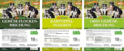 LuCano Complete 3 in 1 mix di patate + frutta + verdura, fiocchi di barba, fiocchi di cane, fiocchi di patate, fiocchi di verdure per cani (5 kg)