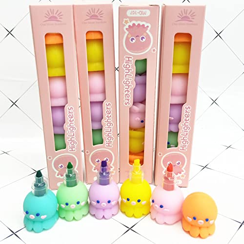 LucaSng Mini evidenziatori colorati a forma di polipo, confezione da 5 evidenziatori pastello, set di simpatici evidenziatori a polpo per adulti, bambini, studenti, scrittura graffiti, forniture per ufficio