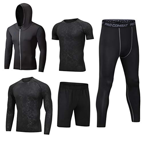 LucaSng Uomo 5 Pezzi Palestra Completi Sportivi Abbigliamento Giacca con Cappuccio Manica Corta Lunga Camicie a Compressione Pantaloni a Pantaloncini Vestiti Leggings Set (Style#13, 2XL)