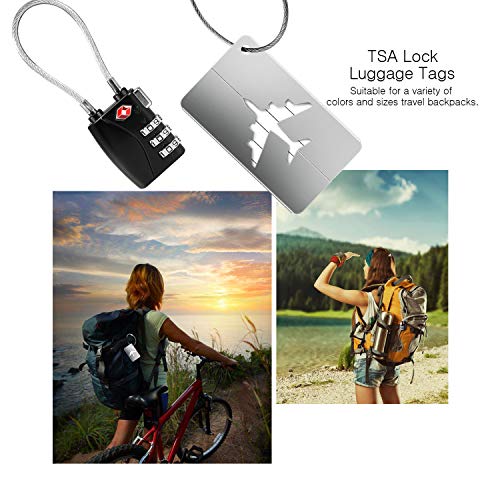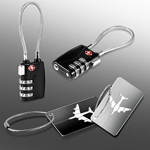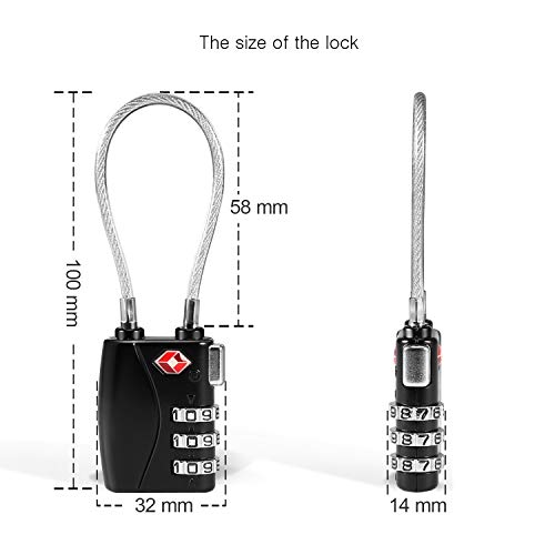 TSA Lucchetti per Bagagli Yosemy Lucchetto Valigia + Tag Bagaglio Lucchetto a combinazione 3 Cifre Serrature per Valigie Bagagli Serratura Dogane Cavo di Sicurezza lucchetti Nero