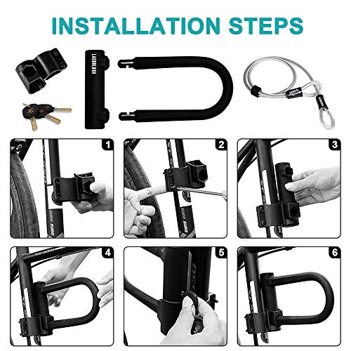 【Maggiore protezione】 la combinazione U-Lock per bici con cavo in acciaio può fornire una protezione maggiore per il fissaggio della ruota anteriore o degli accessori. Con cavo in acciaio di alta qualità da 4 piedi consente una maggiore flessibilità di bloccaggio. Per bicicletta, motocicletta, elettromobile.