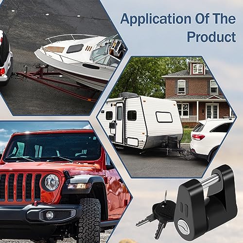 [Sicuro e robusto] Questo lucchetto per rimorchio è realizzato in acciaio ad alta resistenza, rivestito con vernice nera per elettroforesi, robusto e durevole per prevenire i furti.