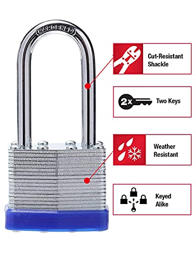 Lucchetti a grillo lungo con chiavi Heavy Duty Lucchetto per chiave esterna resistente alle intemperie Laminato Lucchetto per palestra, scuola, garage, recinzione, capanno