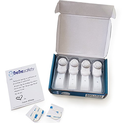 Lucchetti di sicurezza per bambini, per la sicurezza dei vostri armadi e cassette - Lucchetti per armadi con codice - installazione facile con adesivo 3M - perfetto per frighi, armadi, cassette, toielette .. (4 lucchetti).