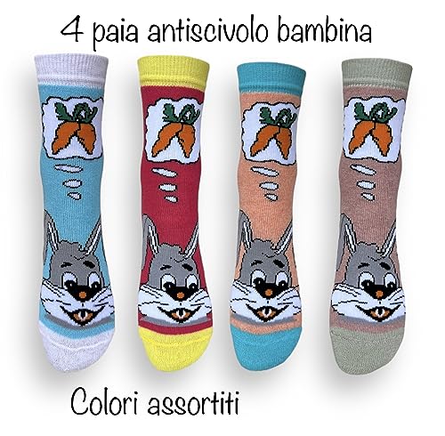 ✅ Calze Antiscivolo da Bambino Bambina Invernali 4 paia in morbida spugna di cotone, grip favoloso, con gomma stampata a caldo molto resistente ai lavaggi