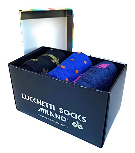Lucchetti Socks Milano calze calzini uomo lunghe estive, in cotone mercerizzato fresco e leggero 3 paia colorate moda fashion (43-46 SET YACHT) (Taglia unica, Set Pois Colors)