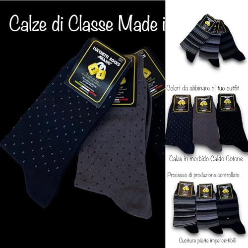 Lucchetti Socks Milano 6 Paia di Calze Uomo Corte Caldo Cotone Colorate Tendenza Pois Fantasia Fashion Made in Italy (Taglia Unica, SET POP SOLO)
