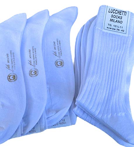 Lucchetti Socks Milano 6 PAIA calze da uomo CORTE filo di scozia 100% cotone rimagliate Made in Italy (11½12 43-46, BIANCO)