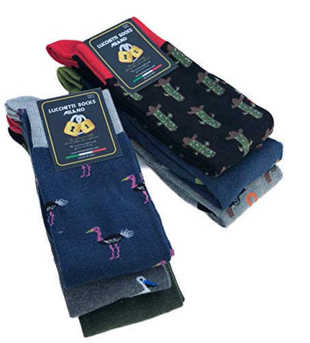 Lucchetti Socks Milano SET DA 6 PAIA DI CALZE UOMO LUNGHE CALDO COTONE COLORATE TENDENZA POIS FANTASIA FASHION MADE IN ITALY (SET WILD WEST)