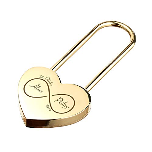 Lucchetto dell'amore a forma di cuore, oro con incisione su 2 lati - amore infinito.