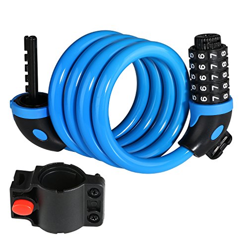 Lucchetto antifurto e anti-taglio universale, con cavo autoavvolgente e combinazione a 5 cifre reimpostabile, ad elevata resistenza, adatto per bici, motociclette, cancelli, recinzioni, garage e porte