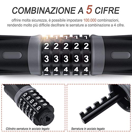 【Adatto a biciclette e motocicli】 Con una lunghezza di 90 cm (35,4 pollici), puoi bloccare la ruota su pali, alberi, ringhiere e altri dispositivi. Può anche essere utilizzato per bloccare porte, recinzioni da giardino, attrezzature sportive, barbecue, scale, tutto ciò che è necessario bloccare.In caso di problemi, domande o dubbi. Vi preghiamo di contattarci! 【Garanzia】 Forniamo un rimborso di 45 giorni e un servizio senza preoccupazioni di 12 mesi 【Indirizzo e-mail: versatekcs@gmail.com】