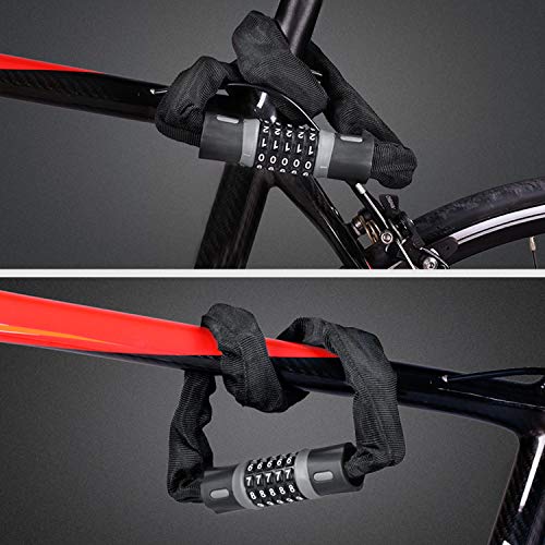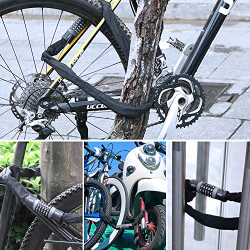 Lucchetto per Bici, [Antipioggia Versione] Diyife Lucchetto Bici Catena Blocco, Impermeabile Bici Lucchetto, Lucchetto Moto Catena con Combinazione a 5 Cifre per Biciclette, Motocicli, Scooter, 90CM