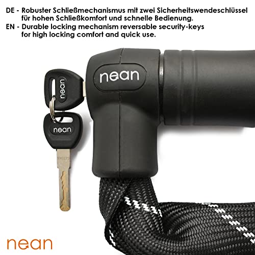 Nean Lucchetto per Moto, Lucchetto per Bicicletta, a Catena per Bici elettriche,2 Chiavi, Elevata Sicurezza e Rivestimento in Tessuto Extra Robusto,Maglie quadrate in Acciaio temprato,10x10x900 mm