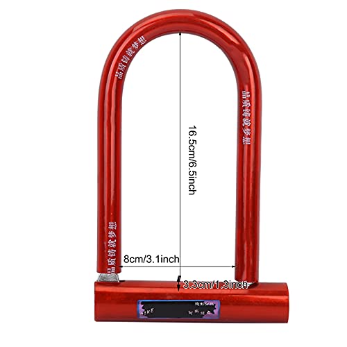 Lucchetto per bici a U, Lucchetto per bicicletta Lucchetto a forma di U Lucchetto antifurto ad alta sicurezza U-Lock per bici resistente, Lucchetti impermeabili antiruggine in rame puro(280 rosso)
