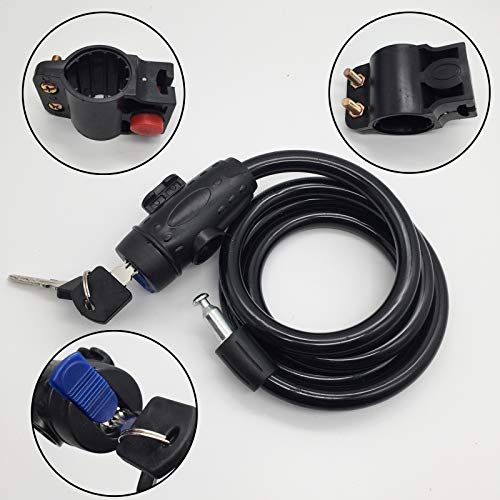 Lucchetto per Bicicletta con Cavo a Spirale Blocco Catena Della Bicicletta Antifurto 120 cm 12 mm Catenaccio Lucchetti da Bici con Staffa e Due Chiave per Motocicli Scooter MTB Passeggini Nero